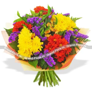 Пёстрые узоры - букет из кустовой хризантемы и альстромерии