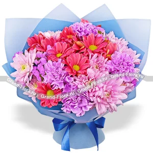 Звездная ночь - букет из фиолетовых хризантем и гвоздик