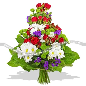 Спасибо, что ты есть! - букет из гербер и кустовой хризантемы
