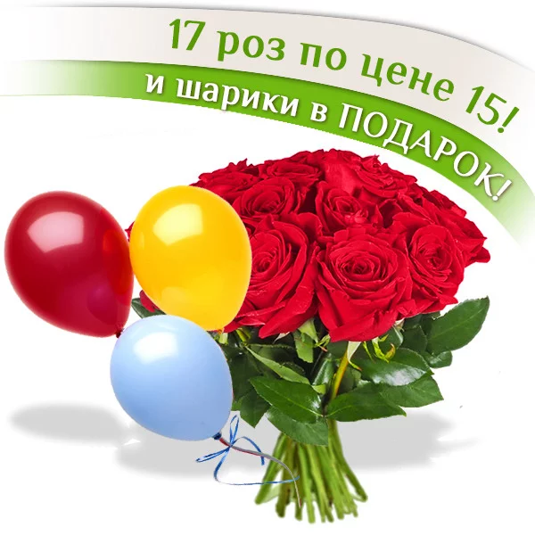 17 красных роз + шары