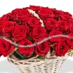 Выбрали 51 розу. Заказали доставку по случаю юбилея нашего руководителя и очень рады что выбрали именно эту компанию! Все соответствует фото на сайте: светлая корзина и отменные, крупные красные розы.