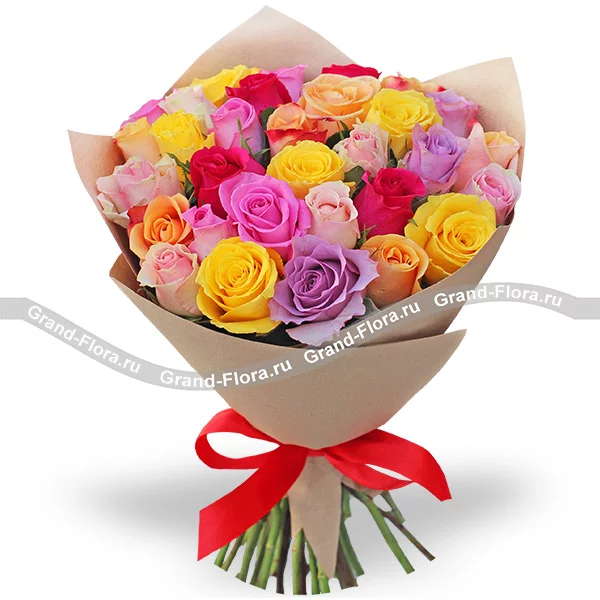 Роза микс Российская - 27 штук 40-50 см, упаковка, лента.