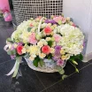 Нежные кустовые розы, эустомы и диантусы — создают гармонию в этой корзинке. Трогательные атласные бантики служат ненавязчивым элементом декора. Цветочная корзина станет отличным дополнительным украшением интерьера вашей гостиной или спальни. Вы можете сделать романтический презент своей девушке, вложив в корзинку открытку с теплыми пожеланиями. Цветы всегда будут беспроигрышным вариантом к любому поводу.